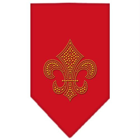 Fleur De Lis Gold Rhinestone Bandana Red Large