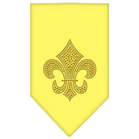 Fleur De Lis Gold Rhinestone Bandana Yellow Small
