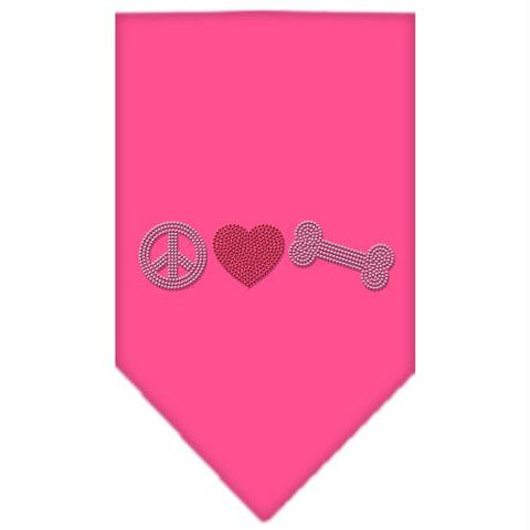 Peace Love Bone Rhinestone Bandana Bright Pink Small