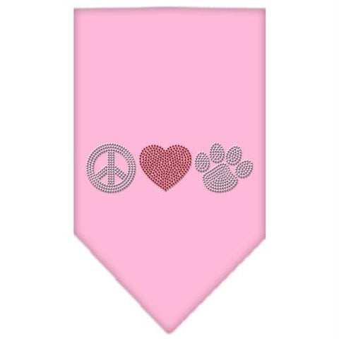 Peace Love Paw Rhinestone Bandana Light Pink Large