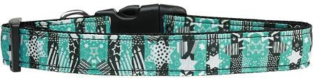 This 1" wide size medium dog collar is made of durable nylon with a high quality ribbon overlay. It is adjustable to fit a neck size from 10-18".